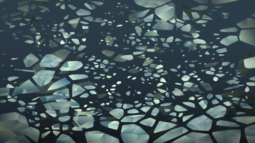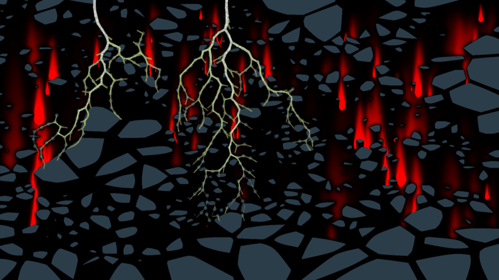 Voronoi Noise liefert das räumliche Grundmuster, auf dem sich alle weiteren Prozesse entfalten. Ausgehend von einer Menge verteilter Keimpunkte wird der Raum in Zonen aufgeteilt, in denen jeweils der nächstgelegene Keimpunkt dominiert. Es entstehen polygonale Felder, deren Größe und Form von der Lage dieser Punkte abhängen und die an natürliche Zellengefüge erinnern. Indem diese Felder mit unterschiedlichen Materialeigenschaften und Zufallsvariationen erzeugt werden, wird das Substrat zugleich gegliedert und heterogen. Die Agenten treffen so auf eine Umgebung mit lokalen Charakteristika, auf die sie beim Wachsen reagieren.
